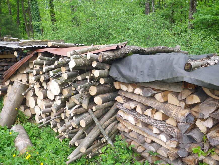- Stärke der Rundhölzer bis 20 cm oder gespaltene Scheite