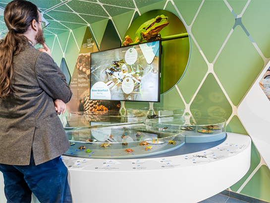 New habitat terrariums are currently being built in the new, enlarged area of the future reptile and amphibian zoo. The large-scale terrariums recreate the tropics of Africa and Asia, savannahs, the deserts of Africa and America and native habitats. Different species, which also live together in the wild, form a community in the terrariums. By enlarging the live animal section, it has become possible to dedicate an entire room to the native herpetofauna, i.e. the amphibians and reptiles that live here. The Haus der Natur is thus placing a further important focus on native biodiversity and species conservation.
