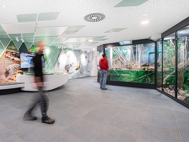 A tour of the reptile and amphibian zoo provides a combination of exhibition space and live animal presentation to convey everything worth knowing about the animal groups on display.