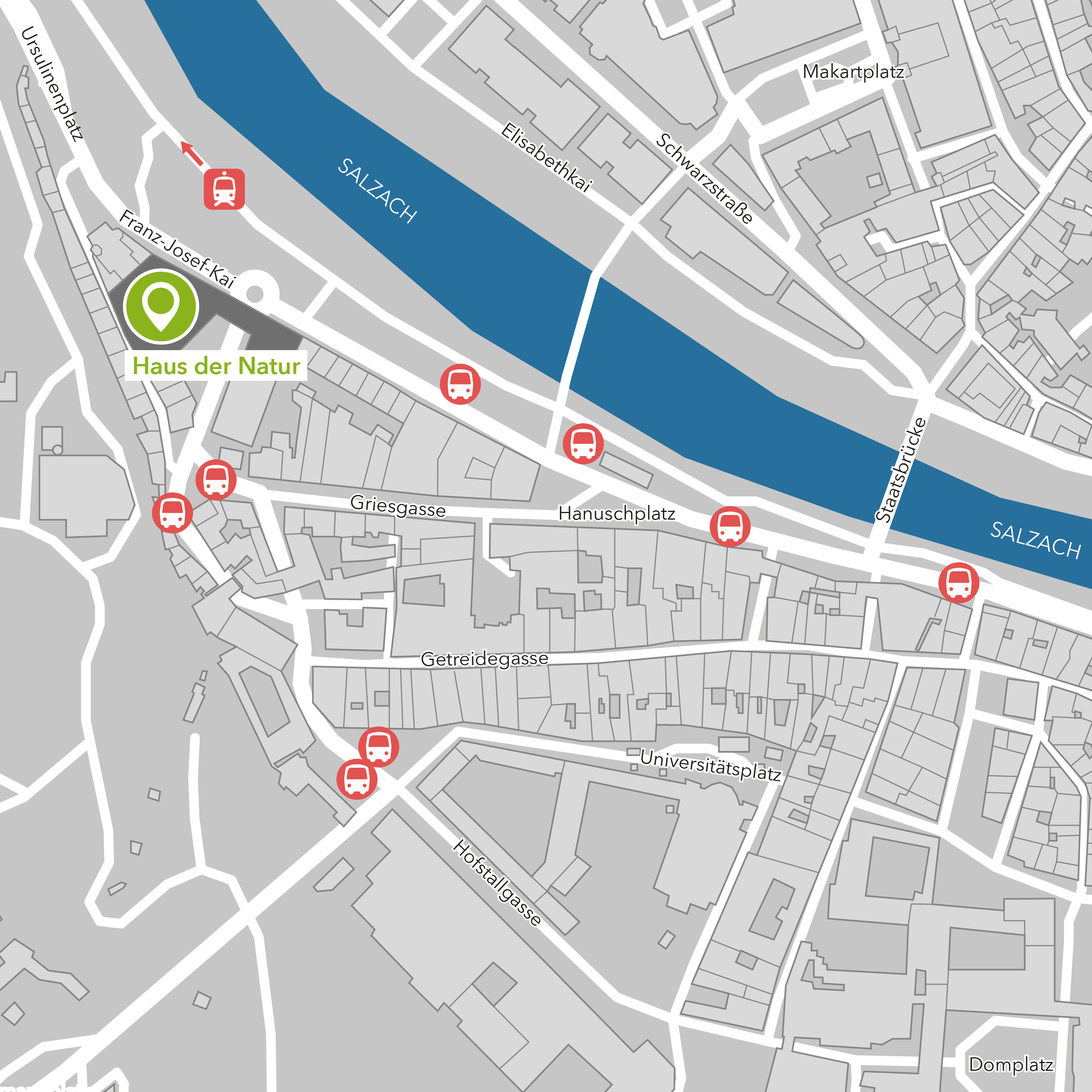 Das Haus der Natur liegt in der Salzburger Altstadt – wir empfehlen die Anreise mit öffentlichen Verkehrsmitteln!