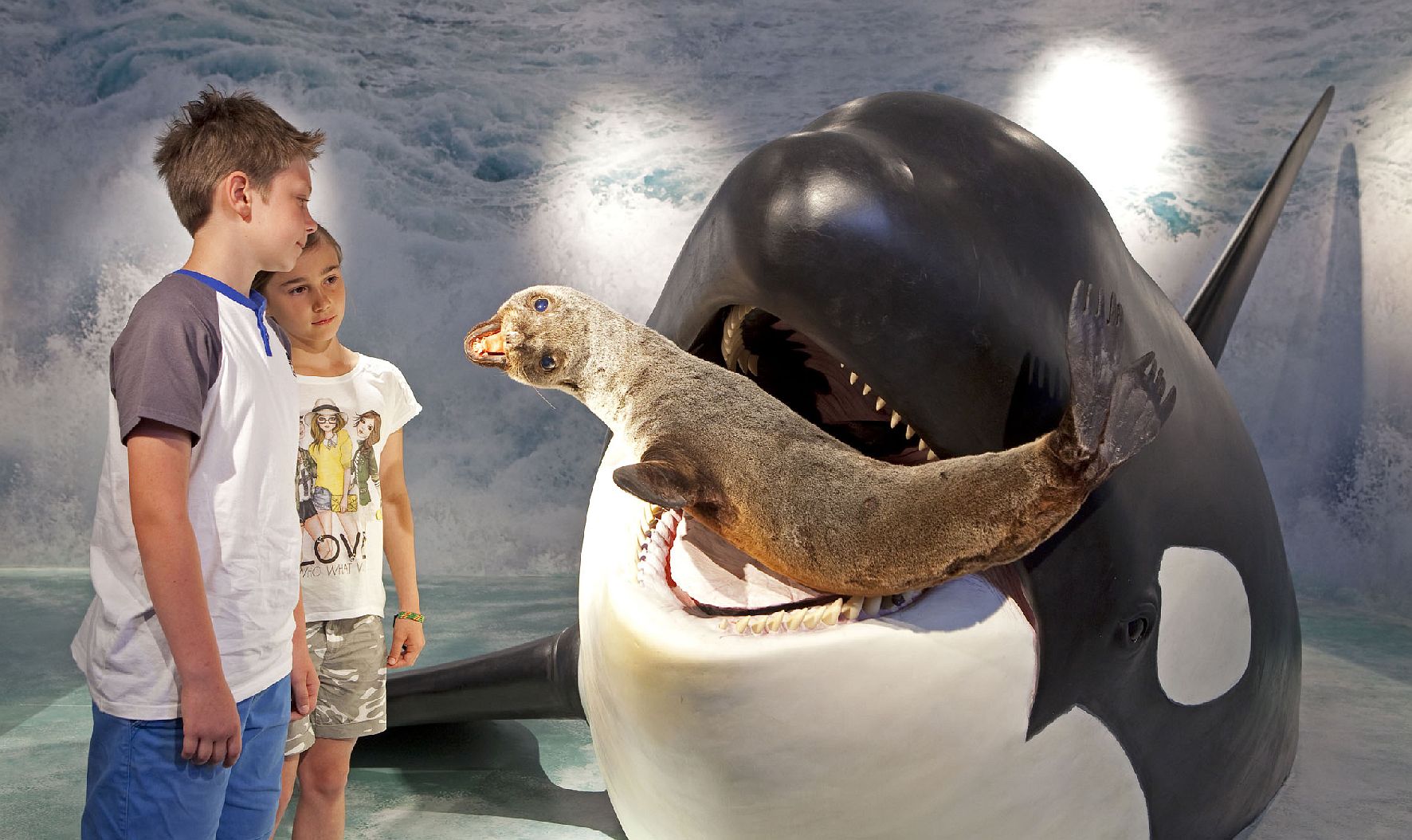 Wale sind die Riesen der Meere und wahre Rekordhalter. Ein Blauwal wird so lang wie drei Autobusse, Orcas schwimmen bis zu 55 km/h schnell und ein Pottwal taucht in Tiefen bis 3.000 Meter. Kaum ein anderes Säugetier übt eine derartige Faszination auf den Menschen aus. Das Haus der Natur widmet den Walen nun eine Sonder-ausstellung, die auf vielfältige Weise von ihrer Lebenswelt erzählt.